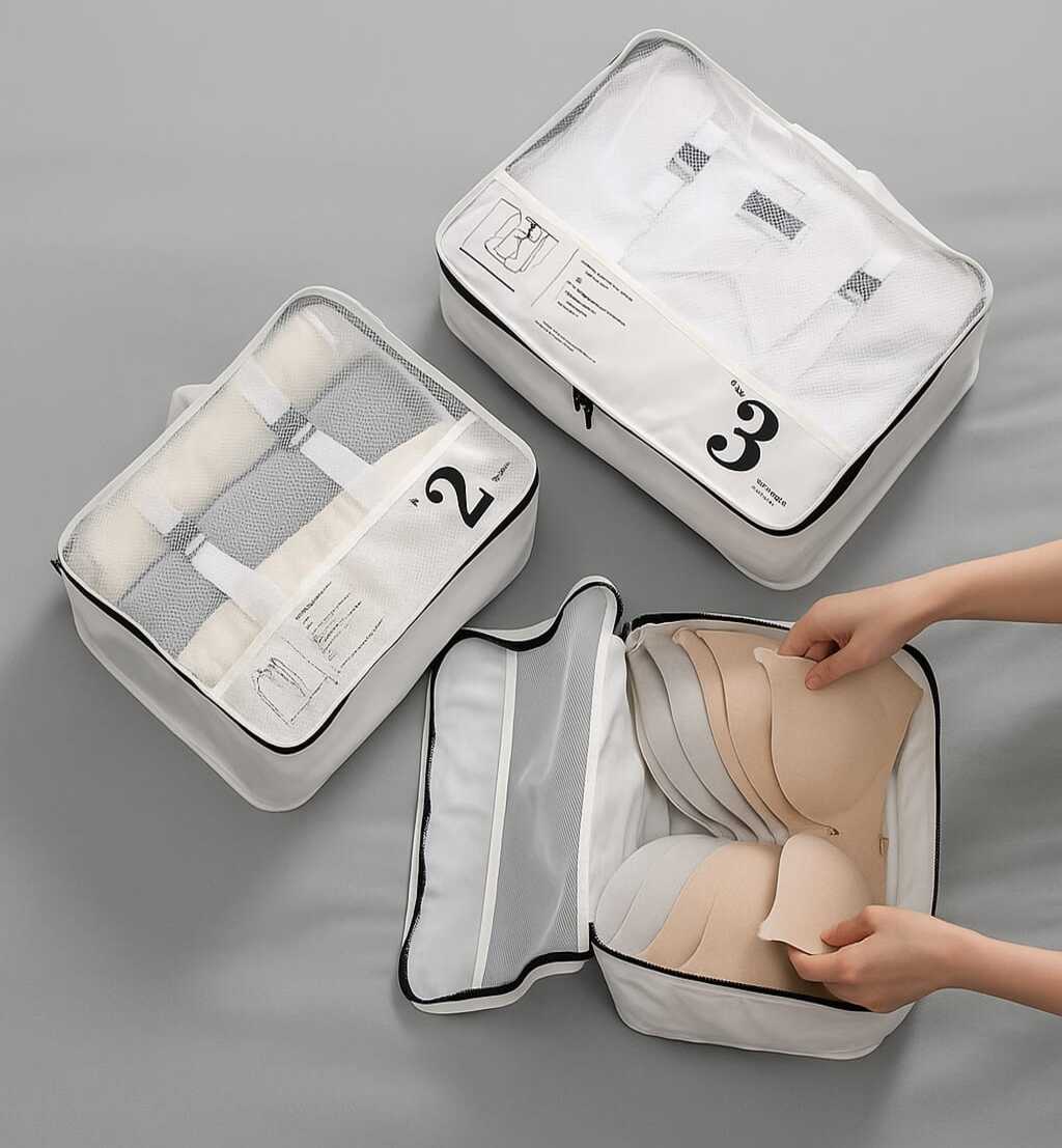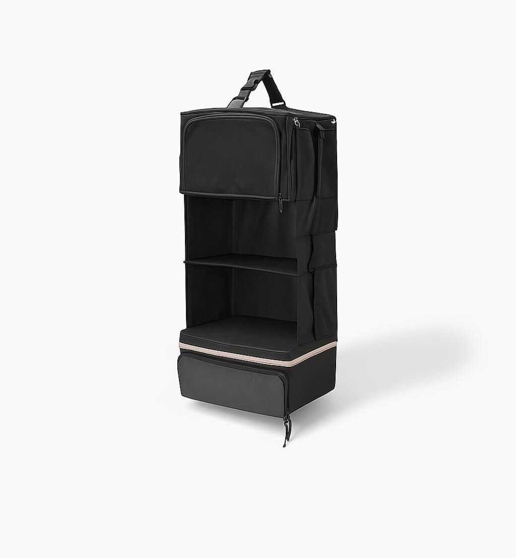 A travel organizer is a compact storage solution designed to neatly arrange and protect personal items during trips, making packing and unpacking more efficient.